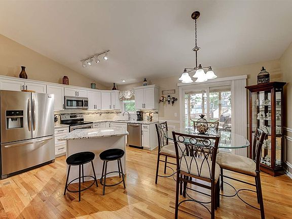 - Kitchen Features: Wood Cabinets, Island, Wood Floors, Pantry, Eat-In, Walkout