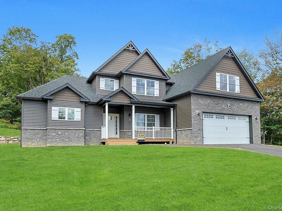 "EXCEPTIONAL CRAFTSMAN" - Luxury living in a prime location at Meadow Brook Estates welcomes you home to 86 Frank Street, New Windsor, NY. Discover a truly special new construction in one of the Hudson Valley's most sought after new subdivisions, offering municipal services, natural gas, and the award winning Cornwall Central School District. This extraordinary Craftsman style residence sits on a premium lot and has been masterfully built by a renowned local builder celebrated for thoughtful design, enduring quality, and fine craftsmanship. Featuring 4 bedrooms and 3.5 baths, every bedroom enjoys direct access to a fully tiled bathroom, perfectly tailored for comfort and convenience. The luxurious first floor primary suite is a private retreat, designed with two walk-in closets, a spa-like bath with separate dual vanities, oversized tile shower, and private water closet, plus enough space for a comfortable sitting area. From the moment you step inside, the home envelops you in warmth and sophistication: rich wooden doors, custom trim, classic 3 1/4 inch white oak flooring, oak railings, abundant natural light, and designer finishes throughout. The Great Room makes a dramatic impression with soaring cathedral ceilings, a wall of windows, and a striking 36" gas fireplace finished with a Wescott mantel with slate surround, sconces and set up for cable ready television installation. The tasteful practical kitchen boasts dark, bespoke finishes, GE appliances, and an inviting dining area with captivating views of the backyard - an ideal space for gatherings, morning coffee, or peaceful evenings. The level yard provides ample room for a future pool or outdoor oasis. Upstairs, three generously sized bedrooms with hardwood hallway floors each connect to beautifully appointed bathrooms, with plentiful closet space to keep everything neatly organized. The builder has elevated this home with an impressive list of upgrades including two high efficiency HVAC systems, CertainTeed siding and roofing, exterior lighting, upgraded double garage doors with openers, sodded front lawn with fully automatic irrigation, seeded back lawn, paver walkway, asphalt driveway, a professionally landscaped and mulched exterior with stone wall accents. The elevated appearance of the neighboring homes and vibe of the neighborhood will enhance your mood on morning power walks and evening strolls. Move in ready and pristine, this home offers the best of modern living in an unbeatable location less than 60 miles to NYC. Just minutes to the Metro North train to NYC, major highways (I-87 & I-84), West Point, Storm King Art Center, shopping, dining, and endless outdoor recreation from world-class hiking to apple picking and farm stands. This is more than a home - it's a complete lifestyle package blending high-end design, quality construction, and the natural beauty of the Hudson Valley. Other models and floor plans available.
