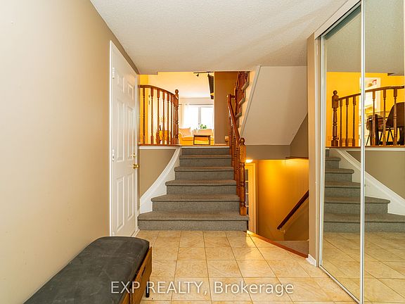 This beautifully maintained Urbandale townhome backs onto mature greenspace, offering privacy and serene views with no rear neighbor's. The front steps have been recently refreshed with new stonework and professional repointing, adding to the homes curb appeal. Inside, the spacious primary bedroom features a full ensuite and walk-in closet, while two additional bedrooms are thoughtfully separated by a few steps for added privacy. The finished basement provides the perfect space for movie nights or a children's playroom. Ideally located in popular Bridlewood, you'll enjoy easy access to transit, shopping, eateries, schools, and scenic walking paths. This inviting home combines comfort, updates, and a fantastic location ready for you to move in and enjoy.
