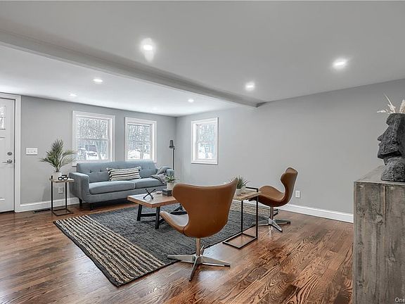 JUST RENOVATED! This amazing ranch on a 1.2 acre lot has been updated from top to bottom and is located in the Pine Bush School District. It boasts an AMAZING open kitchen with QUARTZ countertops and stainless steel appliances, 2 generously sized bedrooms, a gorgeous bathroom, and spacious family room. Additional room off of the kitchen w/ exterior access. Gleaming hardwood floors and recessed lighting throughout the entire home. Even has BRAND NEW windows, siding, and hot water heater. Plenty of storage in the attic and dry basement. Beautiful private yard and on a quiet street. Great commuter location! Super low taxes! Nothing to do but unpack. Make this gem your home sweet home.