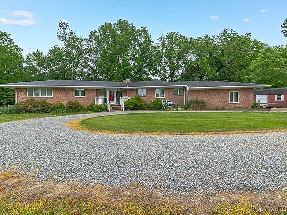 Recently renovated 3BR, 2.5 Bath brick home located on Belmont Creek, just off the Rappahannock River. Single level waterfront living at its best with waterfront Primary bedroom with tile shower and dual sinks. Sunken living room with gas fireplace, dining room, extra large bonus room, sun room and recent Timber Teck deck overlooking the water. Corian counter tops in the kitchen and granite counters in both full baths. Private dock with boat lift and oversized attached garage. Perfect for pets with Anderson storm doors, factory equipped with dog doors, 130' X 120' fenced area with stable/mini barn, additional custom fencing off the bonus room. Large 12' X 28' storage shed is perfect for lawn equipment and water toys. The partially finished basement offers plenty of storage or potential additional living space or workshop. The basement is clean & dry (B-Dry system installed). Convenient to Yankee Point and Greenvale Marinas. This move-in ready home is perfect for retirement or weekends!