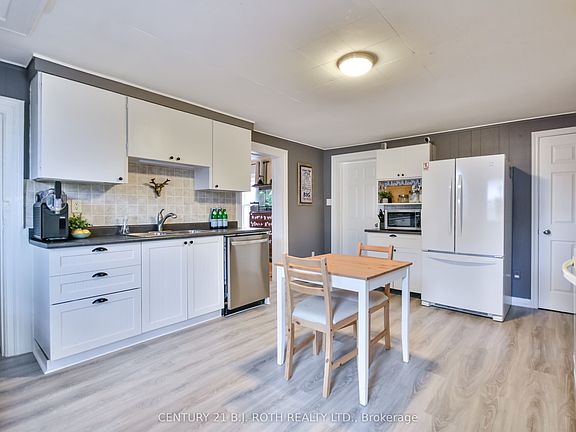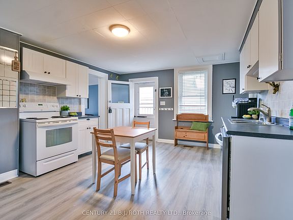 Step into 86 Henry Street, a beautifully refreshed century home that blends timeless charm with thoughtful updates. This two-storey brick home features an inviting main floor with a spacious eat-in kitchen with newly installed flooring, and a bright family room that boasts vaulted ceilings, a cozy gas fireplace, and a walkout access to the deck and patio - perfect for gatherings. The extra-deep 47' x 165' lot is a true highlight, complete with an insulated detached garage/workshop (100-amp service) and a driveway that comfortably fits five vehicles. On the main level, you will also find a large dining area, primary bedroom, updated 4-piece bath, and a convenient laundry room. Upstairs offers two more bedrooms and a brand-new 2-piece bath. Practical upgrades include a durable steel roof, newer electrical, some newer windows, and an owned hot water heater. The low-maintenance perennial gardens add to the homes curb appeal and ease of care. Ideally located near schools, parks, shopping, and transit, this property is perfect for families, first-time buyers, or investors seeking a home in a thriving community with plenty of future upside!