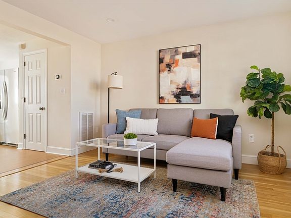 Situated in Dedham’s quiet Manor neighborhood, this 2-bed, 1.5-bath townhome offers three levels of living space. The eat-in kitchen includes new stainless steel appliances, white cabinetry with modern pulls, and new vinyl flooring. Off the dining area is a renovated half bath and a private deck with access to two parking spaces. The second floor features a spacious primary bedroom with an expansive closet, a second bedroom with ample closet space, and a full bath with a tub, shower, new vanity light, and tiled floor. The finished lower level is perfect for a family room and includes a full-size washer, dryer, laundry sink, cabinetry, and a large storage closet. Newly finished hardwood floors run throughout. Updates in 2023 include new siding, insulation, roofs, decks, windows, doors, drainage, and parking lots. New HVAC w/ Central A/C was installed in 2019. Enjoy easy access to I-95, I-93, Rt. 1, commuter rail, bus lines, Legacy Place, and Blue Hills and Neponset conservation areas.