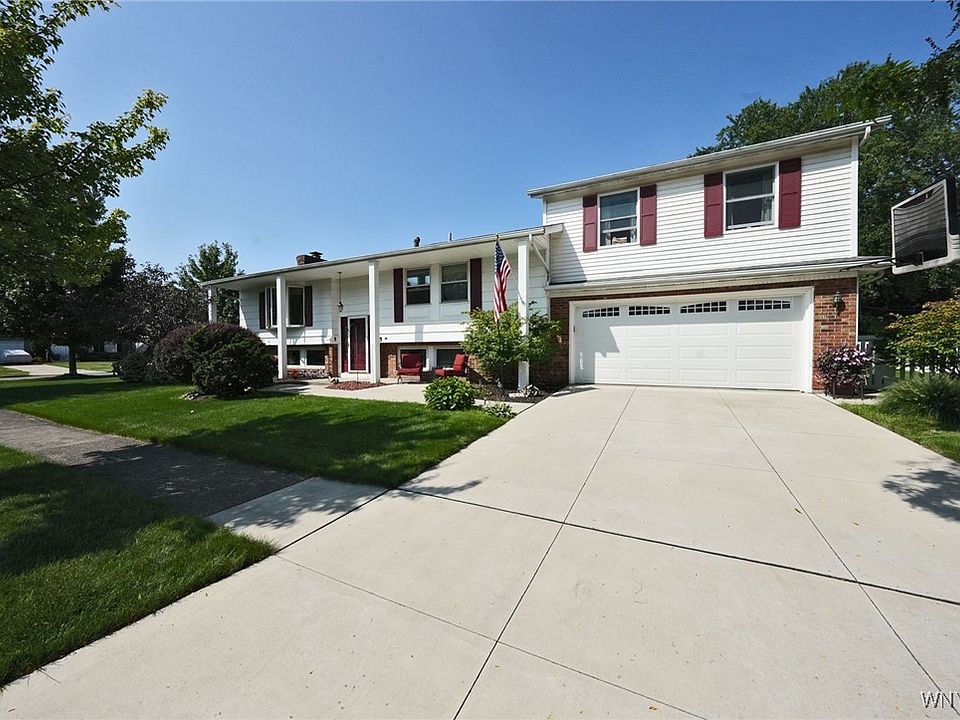 Fall in love with this magnificent home right off of Niagara Falls Blvd and all the conveniences it offers in addition to 2 min from the 290 and a stone's throw from Buffalo's best dog park- Ellicott Creek Dog Park! This home is sprawling with natural hardwood floors, 4 beds, 2.5 baths and tons of entertainment space between 2 living rooms and an oversized eat in kitchen. The basement is completely finished with radiant heating floors with an additional room that could be used as another bedroom if needed! The entire house and ceilings have fresh paint and new carpeting. Situated in a quiet neighborhood, this home sits on a large corner lot with a fully fenced yard '11 complete with an a new awning '23, stamped patio '18 and blissful BBQ area. The entire yard and floral beddings have a sprinkler system for easy maintenance. More updates include new garage door '21, concrete driveway '17, new doors/moldings '21, toilets '24, sump pump '24, appliances '22, a roof with plenty of life left and more! Open houses 8/17 and 8/18 11am-1pm. Don't wait to see your new home! Delayed Negotiations 8/26/24 2pm.