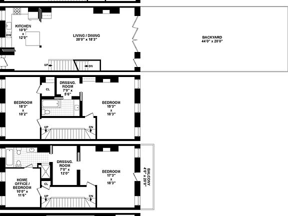 From the street entrance one steps into a peaceful living room and kitchen, with fireplace, and private garden beyond. The second floor has two spacious bedrooms with generous closet space, and a shared bath. The third floor is the primary suite with lovely balcony overlooking the gardens, and a separate dressing area that can also serve as an office, baby's room, or big walk in closet. The top floor is an large open flexible space with a half bath, and skylight, making it bright and airy. Perfect for a work space, recreation room, studio!