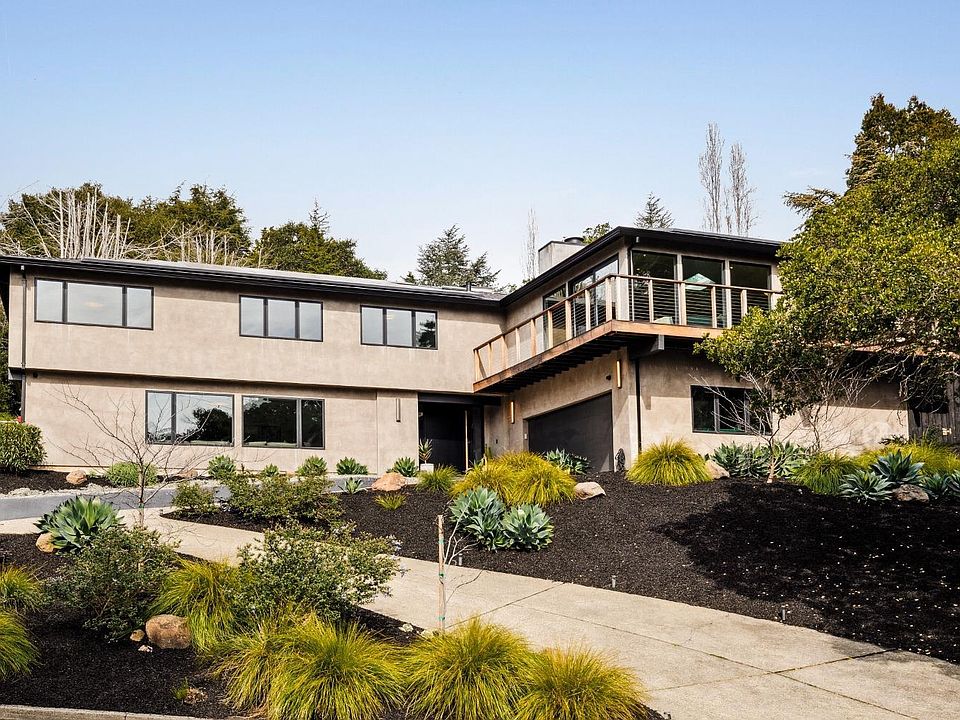 This stunning, modern 4+ bedroom, 3.5-bath home was featured in Marin Magazine for its impeccable design and incredible outdoor spaceone of the rare Marin homes where you don't sacrifice style for the suburbs. The open floor plan with vaulted ceilings creates seamless flow between the living room, dining area, kitchen, and family room. The formal living room features a dramatic Venetian plaster fireplace, bar, and wraparound deck. The state-of-the-art kitchen boasts an oversized Arabescato Corchia Marble island and exquisite finishes. The expansive family room has a second Venetian plaster fireplace and 16-foot Nanawall bi-fold doors opening to the backyard. All bedrooms are on the same level, along with a laundry room, powder room, and office. The primary suite has a stylish bathroom with dual vanities and a walk-in closet. A large downstairs media room includes a full bath, wet bar, beverage fridge, and glass-enclosed wine cellar. Outdoors, enjoy a luxurious pool, fire pits, an outdoor kitchen, and a basketball court. A two-car garage with storage completes this private, resort-like retreatdesigned for both entertaining and everyday living.