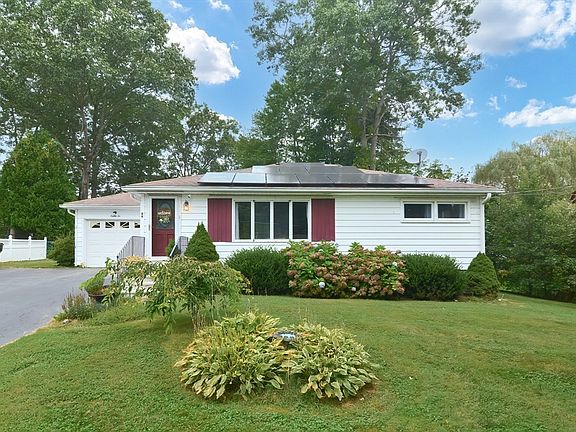 OFFER DEADLINE! ALL OFFERS DUE BY 12 NOON ON Monday 9/16. Welcome Home to this very well maintained 2-bedroom ranch. Easy one-level living. This charming home has lots of recent updates and quality throughout!. Super Location, a Fenced Yard, Central Air, Seller Owned Solar and No Electric Bill, and a Perfect Opportunity whether you are downsizing or just starting out! Updated Kitchen has plenty of cabinet space and dining area with all appliances included, Beamed ceiling in living room, loaded with natural light, accent wall and electric fireplace. Full updated bath with walk- in shower and linen closet. Completing the first floor you have two good size bedrooms with double closets and hardwood floors extending into the main living area. Finished heated basement with bar, laundry and half bath offers a great space for entertaining and having fun with friends and family. 1-car attached garage has space for storage, 2 outdoor sheds and a beautiful back yard space. Worth a look!