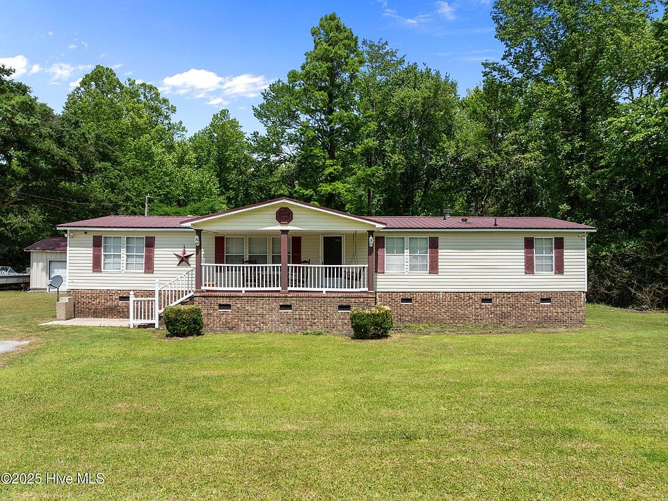 Wind your way outside of Washington city limits to over 5 acres (2 combined parcels) offering tranquility and expansive outdoor potential while still being just 10 minutes from downtown. Whether you're looking to just do some front porch sittin' or take full advantage of the vast land surrounding you, the possibilities are endless. This generously sized manufactured home features a thoughtful split-bedroom design, with two bedrooms and a bonus room (with closet) sharing a full bath on one side, and the primary suite with a large en-suite bathroom on the other. Two spacious living areas provide plenty of room to unwind and entertain. The kitchen is equipped with abundant countertop space, ample storage, and a charming breakfast nook for three, with the dining area conveniently adjacent. A dedicated laundry/mudroom on the backside adds functionality and ease. Whether you choose to renovate or enjoy it as is, the options are yours to explore!