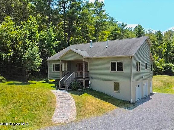 Rock Ridge Estate- Located on a secluded road, this beautifully updated contemporary home offers the perfect blend of modern comfort, nature, and serene country living. Inside you'll be welcomed by a grand vestibule leading to an impressive gourmet kitchen outfitted with top-of-the-line appliances and custom cabinetry, an open-concept floor plan enhanced by vaulted ceilings, rich hardwood and ceramic tile flooring. Offering 3 levels of living and outdoor entertaining areas spanned over 3000 SF, there is room to roam and play or develop the home into 2 separate living quarters with a full walk-out basement. Additional features include; a spacious primary ensuite, dual walk-ins, heated 2-car garage and expansive windows that flood each room with natural light, showcasing views of the surrounding hills and rock ridges. Perfect for a vacation home or investment property. Equipped with a whole house generator. Additional buildable lots available for sale with purchase. Minutes to Village of Catskill, Hudson Riverfront Parks, Shopping and Restaurants. 20 Min to Hunter/ Windham Ski Resorts. #cometocatskill