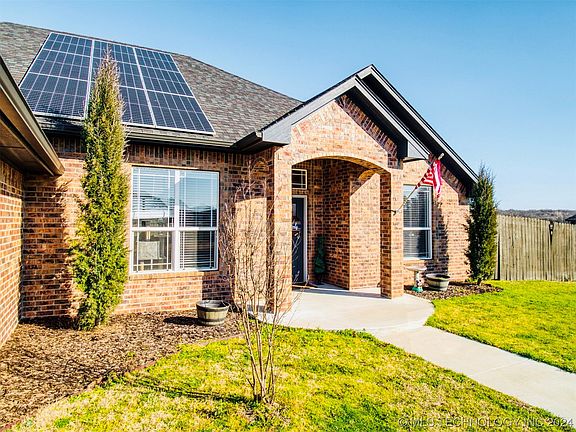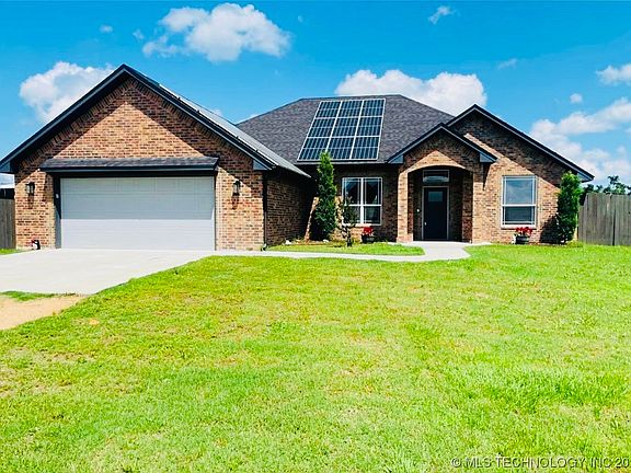 GREEN CERTIFIED with a BONUS ROOM! This custom built newly constructed energy efficient home is located in the Pecan Meadows subdivision in Durant and has stunning upgrades to include Solar-panels, privacy fence, upgraded electric both in the panels and outlets. Electric bill averages $120monthly, that’s incredible! Situated on just over a half acre, you have plenty of space to spread out and enjoy the outdoors all enclosed by a wooden privacy fence. Gorgeous backyard vibes with a covered patio that is perfect for entertaining. Step inside to a beautiful gas fire place, large windows and an open concept with modern farmhouse vibes. Home is equipped with granite countertops throughout as well as great storage and a beautiful color scheme. Seller is leaving ALL gorgeous appliances including refrigerator! Home comes with newer washer/dryer, the laundry room also includes a sink and cabinets with granite countertops. In the backyard you’ll find a brand new storm shelter installed All Nestled on a quiet street with a beautiful country setting.