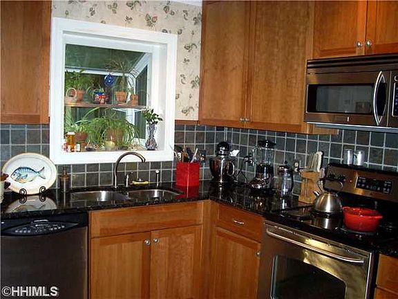Point Comfort Fantastic home in desirable Point Comfort. Remodeled kitchen includes granite counters, stainless appliances, slate floors, gorgeous cabinetry, and greenhouse window. The extended living room has a cathedral ceiling and skylights. Extended first floor master has 2 large closets. Wood floors thru most of the house, plus an upstairs den/tv room and a "man cave" off garage. Community boat ramp, park and pavillion. $249,000.