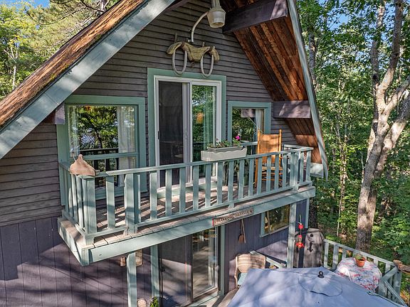 Welcome to this beautiful lakeside property with a serene and private setting. This Lindal style home is elevated on a hill surrounded by mature trees, offering glimpses of the nearby waterfront. The lakefront area is shaded and features amenities like a shed for storing water toys, a large screened-in house, and a 4-seater glider swing - all perfect for relaxing afternoons by the water.