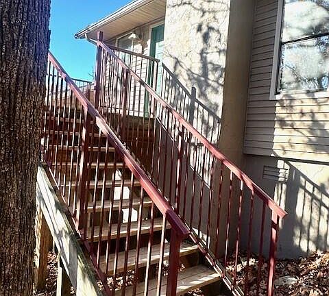 Located in the Newly Refurbished Ozark Mountain Resort!! This Cabin has been totally remodeled and has a Cozy fireplace for relaxing evenings!! Open floor Plan with a modern kitchen!! 2 bedrooms and 2 baths!! Both bathrooms have walk-in showers and the remodel is crisp and clean!! Loving the nature feel off the deck with beautiful trees and wooded landscape. On-site amenities include outdoor pool, new pickleball, and basketball courts!! This property is minutes away from Port of Kimberling City and dining/shopping. Branson attractions are nearby as well. Nightly Rental Approved!! A MUST SEE!!