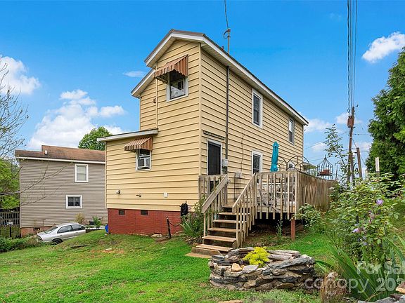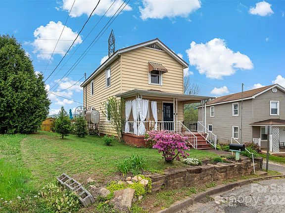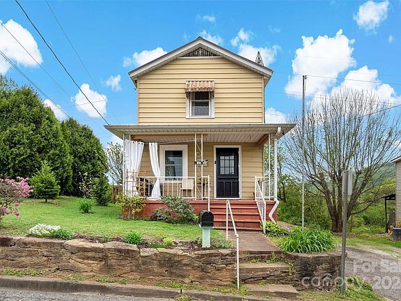Conveniently located close to town this pretty home features a covered front porch with awesome mountain views including Mt Mitchell. Living room has attractive wood flooring, faux fireplace and cool light fixture. The kitchen has good cabinetry, wooden countertops, a bar and stainless fridge with bottom freezer. Roomy pantry located under wooden staircase. The laundry room includes a half bath and door to outside deck. The monitor heater is strategically located there to serve both floors. The second floor has a primary bedroom with bath. Second bedroom has 3 closets. There is a nice backyard with storage building w/2 lofts; Other features: side yard deck; some newer windows in home; small hot water heater is less than 1 year in age;