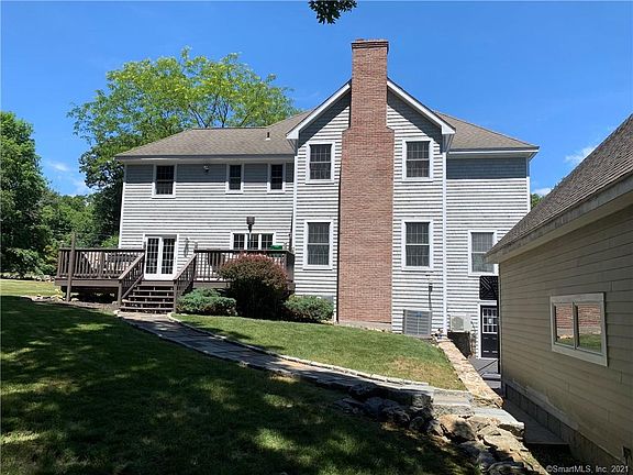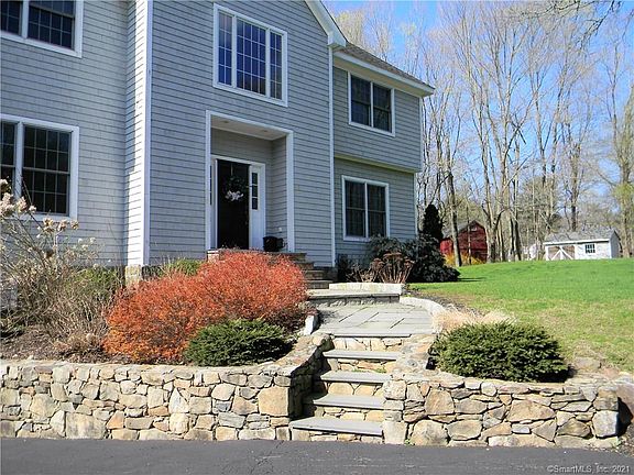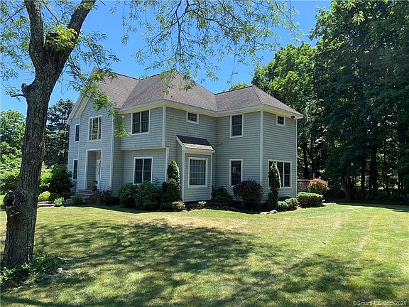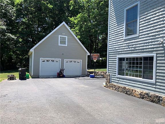 Attractive Nantucket-style, shingle sided colonial home on LEVEL, professionally landscaped 1+ acre lot. This property is located in a residential area within just a few minutes' drive of a variety of awesome restaurants and shops as well as I-84 exits 10 and 11 and Route 34 - great commuting location This spacious home features 9 ft ceilings, crown molding and hardwood floors throughout the main level. Just off the cozy family room is a main floor office - great for remote business dealings There is access to the rear deck through both the family room and eat-in kitchen. Upstairs the master bedroom has a double-door entry, a full bathroom with soaking tub as well as shower, walk-in closet and a fireplace for cozy winter nights. There are three other spacious bedrooms on the upper level. Conveniently located second floor laundry room has a sink as well as washer and dryer hook-ups. The lower level is finished (although it is not heated and in the past has been used as a "man cave" but could also be used as a spacious playroom. This lower level also has direct access to the rear driveway. The detached two-car garage has a huge untapped loft space - could be just storage or a game room or additional office space - loads of opportunity. The home is approached by a semi-circular, paved driveway and features professional stonework with storage shed.