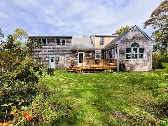 Move-in ready 2574 sf 4-BR 3-bath home for sale NORTH OF 6A near Dennis Northside Mayflower & Bayview Beaches (0.6 mile). Tranquil 1/2-acre lot w/room for a pool, private back yard bordered by stone walls & wooded preservation land. Close to Dennis village for dining, theater, shopping, ice cream. Recent updates include: new interior paint, new kitchen granite countertops, newly painted white cabinets, New LED recessed lighting, new exterior trim & siding work. Hardwood floors on both levels, heated sunroom w/vaulted ceiling & slider to deck & yard, 2 possible primary BR suites w/full baths (on 1st floor &1 over the garage), 1st floor laundry, large front to back living room w/gas fireplace, elegant chair rails & wainscoting, 2 large front to back bedrooms upstairs that fit 2 queen beds, a bonus room for home office/nursery/ reading room...Tons of closet space. Huge 9ft ceiling walkout basement (possible additional 1200sqft of living space). Natural Gas heat, Attic Fan, Outdoor shower, new 4BR septic system being installed by the seller, 2-car garage with direct entrance. Great rental income projection (see documents).