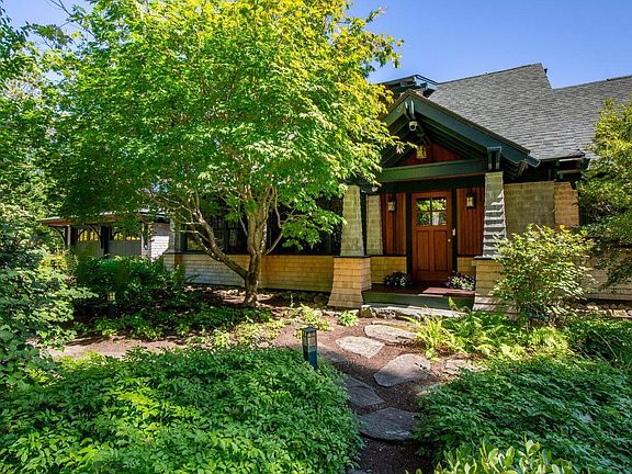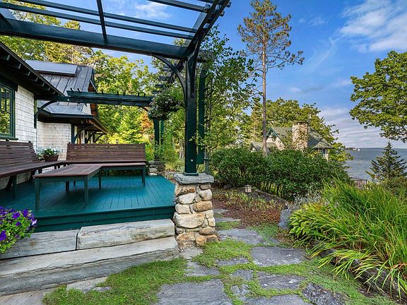 86 Roxmont Road is an exceptional waterfront estate with 1.9± acres, 265± feet of shorefront, and expansive views over Penobscot Bay towards outer Rockport Harbor, Indian Island Light, and beyond. Privately located in a desirable neighborhood, the property features an expertly rebuilt and expanded main residence designed by John Morris Architects that combines the timeless character of Shingle-style architecture with the refined craftsmanship of a Greene and Greene inspired Arts and Crafts aesthetic. Luxurious and locally sourced materials contribute to the quality, and a subtle nautical theme lends a sense of whimsy and character. The five-bedroom home offers a versatile layout with nearly every room enjoying water views and access to the grounds. The living room features oak floors, built-ins, and a custom hearth with wood stove, and the kitchen, designed to reflect that of a luxury sailing yacht, includes custom cabinetry, marine-grade hardware, professional appliances, and a built-in breakfast bench. The stunning main-floor primary suite includes a mahogany-paneled cathedral ceiling, a two-story chimney, a spa-style bath with soaking tub and walk-in stone shower. Steps away from the main house by the dock, the beautifully crafted Boat House/Guest Cottage features an open living space, a tranquil bedroom with a private balcony, and a wraparound deck with a stone fireplace. The professionally landscaped grounds include meandering lit stone paths, irrigated perennial gardens, and mature flowering shrubs, all set within areas of ledge and lawn. A deep-water dock with water and power, hydraulic ramp, float, and two moorings offers access to the natural beauty and boating lifestyle of the Midcoast region. Private and quiet, yet just minutes to the shops, dining, cultural institutions and healthcare options in Camden, Rockport, and Rockland.