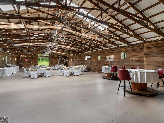 Fabulous EQUINE BARN VENUE, on 5 level acres with 12,000 square foot barn with metal roof, divided by a firewall to host enumerable events, such as weddings, parties, dinner-theater, open mic night at one end, and board horses in the stables, including an indoor exercise arena at the other end. Horses and their owners will also enjoy outside a lighted riding arena for nighttime exercise, (also used for parking during large events), and fenced pastures. The entertaining end of the building includes: a large event room with barn doors, and pergola to bring the outside in, a foyer, groom's room, bride's room, warming kitchen, two bathrooms. The stable is currently licensed to board 5 horses with the potential of up to 10 horses. Property is surrounded by nearby USFS with abundant trails in the Mountain Lake area of Northeast Georgia. Convenient to Blairsville, Blue Ridge, GA and Murphy, NC. Come see the endless possibilities of this amazing venue! Call me today!