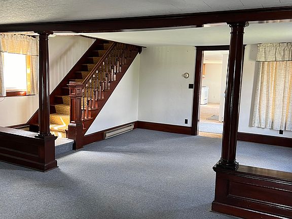 Spacious home located in the Village of Rouses Point, NY, minutes to the Canadian border, and the State of Vermont. Home features 4 upstairs bedrooms, 1 1/2 bathrooms, and is on a ''double'' sized lot. The downstairs bathroom is plumbed for a tub/shower. The kitchen has new sheetrock, electrical and plumbing, but does not have cabinets, countertops or a sink. The front porch is heated and has a newer door and windows. The two-car detached garage also has a workshop and loft area. See walk thru video at https://youtu.be/JpKrQm9CkWk