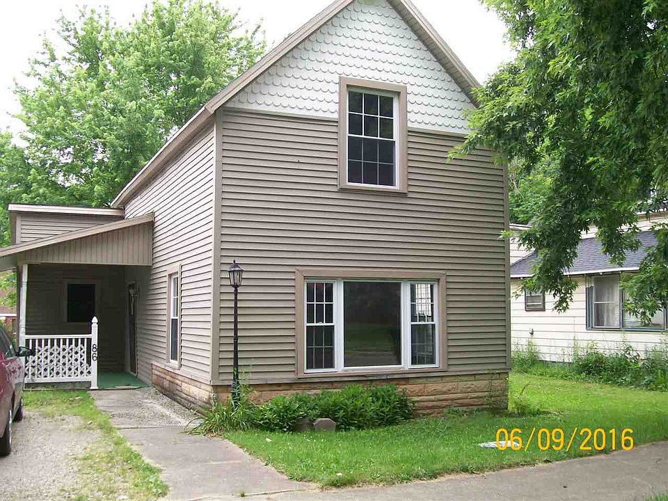 Nice home in great neighborhood. Newer siding and replacement windows. 1 BR on main level and 2 large BR on upper level. Has large living room that could be divided into living and dining. REO SOLD AS IS.