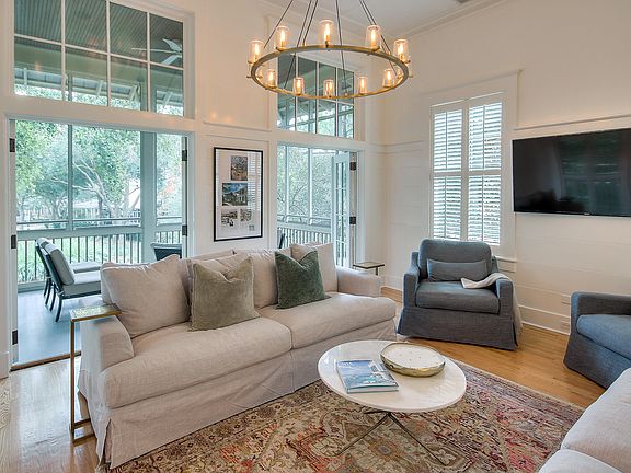 Designed by Jim Strickland of Historical Concepts as a ''Coastal Living Idea Home'' in WaterColor and Rehab completed by Logan and Logan Construction and Tip Top Design Company. This coastal architectural home is a timeless delight. Nestled in the oak trees and situated on cozy Crimson Park and just steps from the currently expanding Beach Club. This newly updated spacious home is move in ready and features an open floor plan surrounded by wrap around porches both screened and open on all three floors allowing expansive areas for inside and outside entertaining. The beautiful entry expresses the expansiveness and open feeling this home provides with its vast staircase, wide plank shiplap walls and oversized windows throughout.