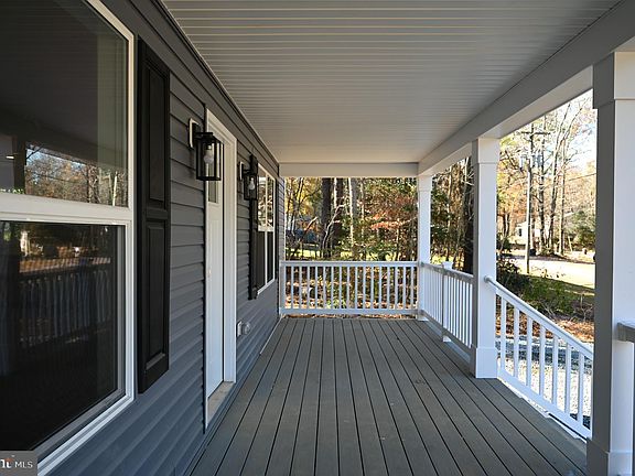 A charming ranch style house for sale in Placid Bay Estates near Colonial Beach, VA. One floor living with flowing floorpan. Kitchen with upgraded quartz countertops, upgraded cabinets, and GE appliances. Pella windows. Upgraded LVP flooring throughout. Custom paint colors. Beautiful low-maintenance Timber-tech front & back porches. Back porch with room for seating or grilling.