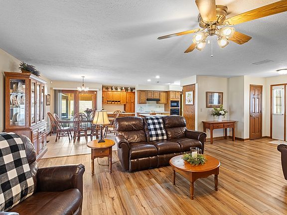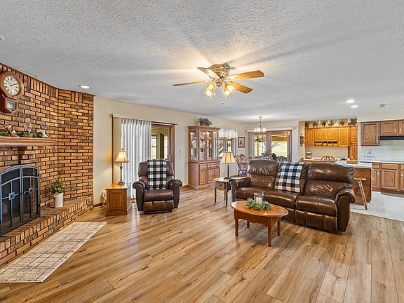 This well maintained residence offers a blend of comfort and functionality, featuring 3 bedrooms and 2.5 bathrooms. The inviting living room is enhanced by a gas fireplace, creating a cozy atmosphere. Adjacent to the living area is a sunroom that overlooks the backyard, providing a serene space to relax. For those who enjoy outdoor entertaining, the enclosed patio at the rear of the home is equipped with a built-in kitchen, making it ideal for gatherings. The property also boasts an above-ground pool with an attached open deck, partially enclosed for shaded relaxation. Additionally, a spacious 36' x 48' pole barn with a 20-foot lean-to offers ample storage and workspace, catering to various hobbies and storage needs. This home combines practical amenities with inviting living spaces, making it a perfect choice for comfortable living and entertaining. The home is also wired for a generator and the pole barn has electrical. Contact Linda Ramsey with Tradewater Realty for showing