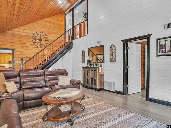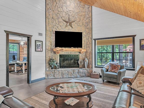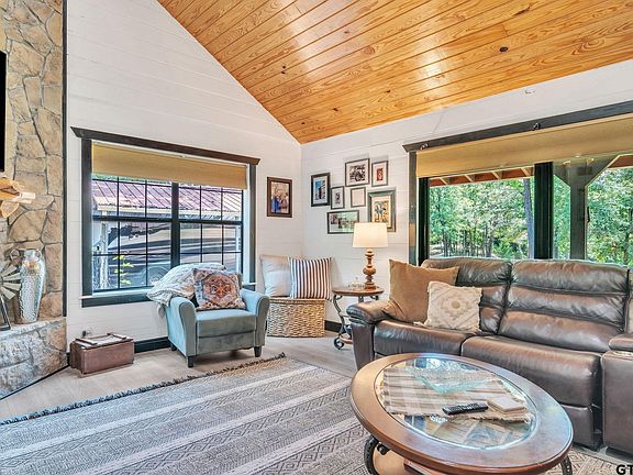 Secluded Mountain Top Retreat with rolling terrain and dramatic elevation changes offering panoramic views for miles . Escape to this stunning, private property with breathtaking views, perfect as a primary home, hunting lodge, or income-producing retreat. Located 10 minutes from Jacksonville, 30 minutes from Palestine, and 45 minutes from Tyler, it blends tranquility with accessibility. The main house features a spacious master suite with a jacuzzi tub, a large utility room (convertible to a third bedroom), a stone fireplace, and a sunroom doubling as a second living area. Enjoy outdoor relaxation in the 18x11 gazebo. Modern upgrades include a new water heater, dishwasher, microwave, oven, and a Generac generator. Public utilities and two septic systems support the main house and a furnished cabin, ideal as a mother-in-law suite or rental. A pump house with a 500-gallon tank and city water ensures reliability. Infrastructure is ready for additional cabins. Outdoor enthusiasts will love the ¼-mile asphalt driveway, hiking/hunting trails, abundant wildlife, and a wildlife tax exemption. Fruit trees and a grapevine add charm. A 40x40 shop, 10x18 shed, 2-car carport, and outdoor shower enhance functionality. A 2022 Mahindra tractor with implements (brush hog, grapple, forklift, box blade, auger, wood chipper, backhoe, dump bucket) is included. This versatile property is a peaceful retreat, hunting paradise, or investment opportunity. Don’t miss this unique gem!
