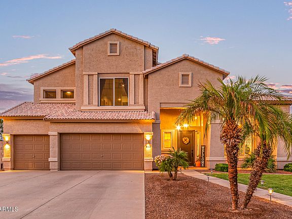 Over $300,000 in upgrades. 5 bed, 2.5 bath, 3,482 sq ft on an oversized nearly ½ acre lot in Lindsay Estates. Recent improvements include new exterior paint, brand-new HVAC system, custom plantation shutters,kitchen, and a glass-enclosed office addition on the main level with abundant natural light. Open floor plan with high ceilings, modern finishes, and multiple living areas designed for functionality and comfort. The kitchen features an expanded center island and connects seamlessly to the main living area. Outdoor spaces offer privacy and backyard suited for entertaining. Located near top-rated schools, retail, dining, and freeway access. A powder room, staircase lighting, & well-appointed mudroom add convenience & sophistication! The main bedroom, conveniently located downstairs, has French doors leading to the backyard & a luxurious ensuite with a dual-sink vanity & makeup area, a roll-in rain shower, a freestanding tub, & a spacious walk-in closet. Upstairs, a nice-sized loft offers flexibility for a reading nook, while one of the secondary bedrooms is equipped with a built-in projector, perfect for a game or media room. The backyard paradise comprises a covered patio, grassy play area, a fenced pool & spa combo, & a Ramada. Enjoy luxury, comfort, and thoughtful designready to impress!