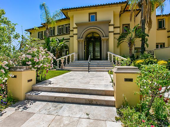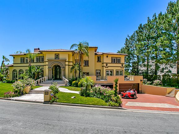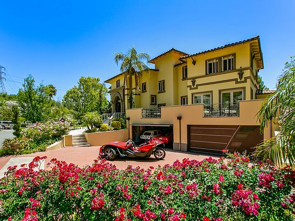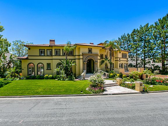 Grand Mediterranean Villa is located in the prestigious La Cañada Flintridge Greenridge Estates. Featuring over 7400 sqft. Of living space, with six bedrooms and 11 bathrooms. Dramatic gated two story entry with graceful curved grand staircase and travertine floors. Step down formal living room and formal dining room with french doors that open to a covered loggia with views of the spectacular pool/spa and cascading waterfall, perfect for al fresco dining and entertaining. Professionally landscaped grounds with summer kitchen and BBQ, grassy yard with views of the golf course and mountains. Gourmet designer kitchen with granite counters, custom cabinets, top-of-the-line appliances, full-size double Sub Zero refrigeration, and spacious center island with prep sink that opens to the family room and adjacent office. The second floor features four bedroom suites, including a fabulous master suite and one suite currently being used as a closet. The lower level features a theater room, game room, sauna, wine cellar, 6th bedroom suite, and four car attached garage with black granite flooring.