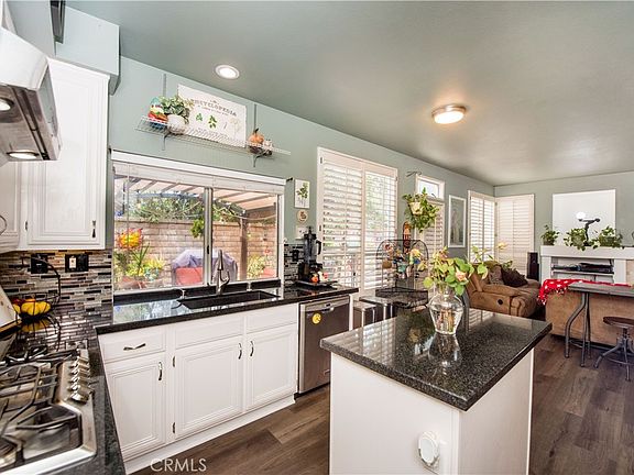 This is it! This beautiful 4 bed and 2.5 bath home boasts 1944 square feet of living space and many tasteful upgrades throughout. The kitchen has received a full set of stainless steel appliances, white cabinets, black granite countertops and a designer backsplash. The entire downstairs has been appointed with new luxury wood look vinyl tile. There is both a living room with a remodeled fireplace and a family room. A completely remodeled half bath, a formal dining area with a designer ceiling fan and a huge laundry room with a sink and folding table. The downstairs oversized bedroom/Den offers amazing privacy from the other rooms as well. Upstairs you will find 3 more bedrooms and 2 bathrooms. Two of the rooms share a Jack and Jill bathroom and the primary bedroom has its own on suite bathroom. The primary suite is sizeable and has a walk in closet. In the backyard you will find a brand new sparkling covered hot tub and a bar with a built in refrigerator for entertaining. There is also a mature lemon tree and dog run. This home has also recently received a new water heater, HVAC system, and leased solar. Located within walking distance to Stagecoach park, and freeway close to both the 91 and 60 freeways. There are no neighbors behind. All this one needs is its new owners!