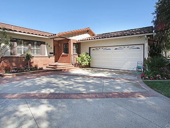 Fantastic purchase opportunity on this gorgeous 4 br 2 ba single story home located in interior tract location! Tile roof, beautiful curb appeal with brick accented exterior, planters and hardscape, glass insert entry door, gleaming hardwood floors throughout the living area, formal living room with fireplace, recessed lights throughout, updated windows and sliding doors, crown molding, dining area, bright kitchen with Corian counter tops, double oven, dishwasher, garbage disposal and eating area, separate inside laundry room with pull-out drawers in pantry, nice size bedrooms, cedar lined closet, ceiling fans, hallway bath with upgraded marble dual sink vanity and walk-in tub, mirrored wardrobe door, built in safe, master bath with tiled vanity and shower, forced air heating and central air conditioning, serene and beautiful entertainer's backyard with covered patio, low maintenance lawn, and 2 car attached garage, Don't miss out!!! Submit!!!