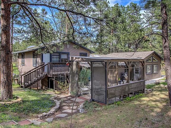 This cozy home is located in Larkspur Colorado (Douglas County), Just 15 minutes to Castle Rock. Situated on a one acre private lot with towering pine trees and wonderful planting throughout the property. There is large outdoor 12' X 16' planting cottage (almost a barn) or can be used as a shop plus another shed . Special outdoor patios, water feature and decks your sure to enjoy. The home is very well cared for and has has several improvements including a room addition (Great Room) since first built. The Mater Bedroom was expanded with a large master bath suite. This home is so comfortable and special you cant help but want to make it your very own. This is a very affordable home for the area and deserving of quality offers.