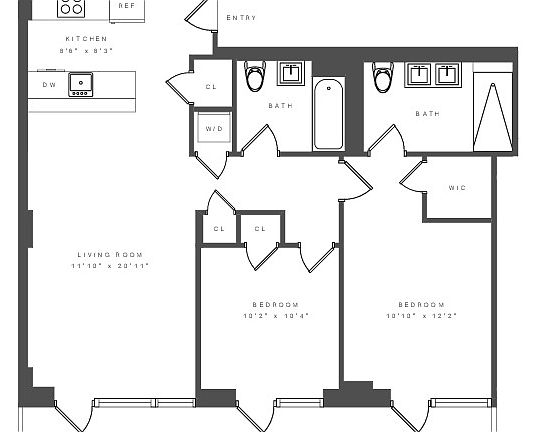 Located in one of Greenpoint's most sought after luxury rental buildings on the cusp of Williamsburg. Rarely does a 2 bedroom with private terrace come available. Every detail has been thoughtfully designed using the finest materials including wide white oak wood flooring, a state of the art kitchen with custom European cabinetry outfitted with industrial panel glass detailing, stainless steel appliances, large steel casement style windows. and a WASHER/DRYER in the unit. The bathrooms have been meticulously designed featuring a double sink in the master with a dark walnut vanity and black matte hardware.