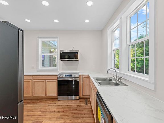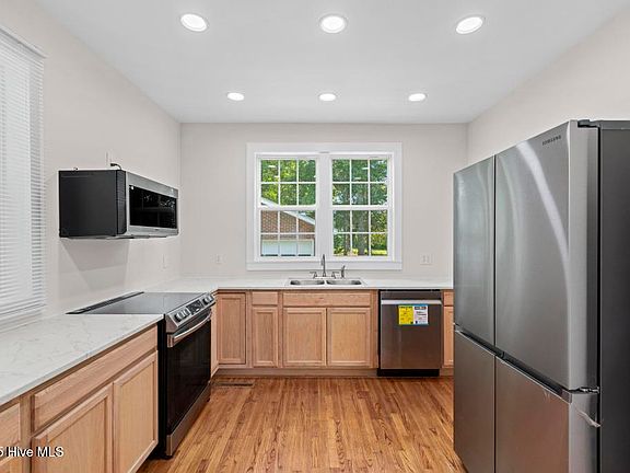 Welcome to 860 Main St, a beautifully restored 1936 brick Colonial Revival in the heart of Bayboro. This renovated 3-bedroom home sits on a spacious 1.25-acre lot and combines timeless charm with modern updates. Step inside to find hardwood flooring throughout, detailed crown molding, recessed lighting, and a flowing floor plan perfect for both everyday living and entertaining. The kitchen boasts hard-surface countertops, new cabinetry, and stainless steel appliances, with a formal dining room just steps away. The cozy family room features a wood-burning fireplace, while the sunroom offers the perfect spot to relax. A large laundry room provides ample space for additional built-ins or storage. Upstairs, you'll find three bedrooms and a gorgeous full bathroom complete with a dual vanity and a tiled shower/tub combo. Outside, enjoy a detached 2-car garage and plenty of room to roam on the expansive lot. This home has been thoughtfully brought back to life and ready for its next chapter!