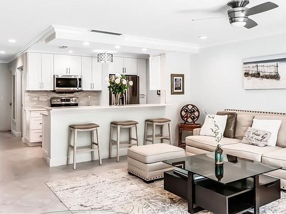 Experience Naples in this remodeled townhome, fully furnished, with new appliances, near Mercato and a mile from Vanderbilt Beach and Pelican Bay Sports Park. All utilities are included. Featuring an attached garage, it's close to shopping, dining, theaters, fitness centers, and two pools. Enjoy 2-bedroom suites, each with its own bath and vaulted ceilings. Relax on the patio and embrace the Naples lifestyle with access to boating, golf, tennis, and stunning sunsets.