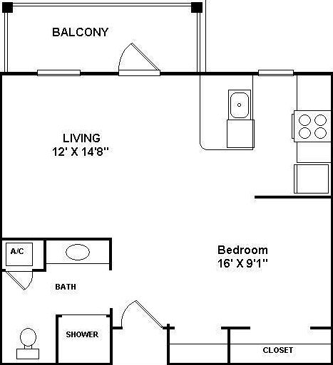Beautiful large studio unit with balcony, deeded garage parking, water, sewer, trash and pest control included!!