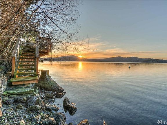 Waterfront cottage overlooking East Sound. Three bedroom, 1 1/2 bath home located on .66 a+/- ac. w/waterfront deck & incredible views! Beautifully remodeled w/stylish touches throughout this quaint & private getaway. Custom cabinets, doors, slate tile & rustic pine floors lend to the cottage on the knoll feel. Stairs to a private cove beach & mooring buoy. High-speed internet. Create additional living space using the existing interior stairs to daylight basement. Excellent vacation rental!