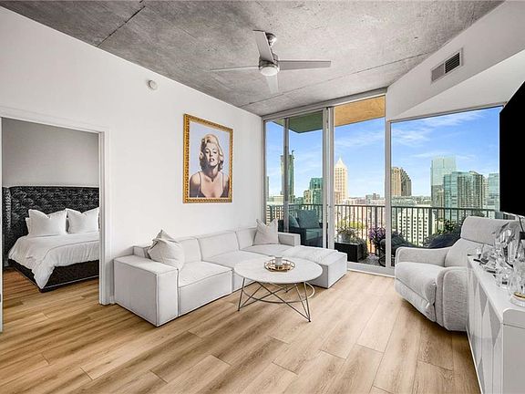 Experience elevated city living in this beautifully renovated 21st-floor residence in the heart of Midtown. Bathed in natural light, this thoughtfully designed 2-bedroom, 2-bath condo offers breathtaking skyline views and unmatched convenience just steps from daily essentials and minutes from Piedmont Park. Inside, enjoy hardwood floors throughout, a sleek waterfall kitchen island, stainless steel appliances, and a dry bar with dual-zone beverage and wine fridge. The spacious living and dining areas are perfect for entertaining, with all top-of-the-line appliances included for tenant use. Two assigned parking spaces are provided, one with a private EV charging station. High-speed internet is included. Building amenities feature 24/7 concierge service, resort-style pool, state-of-the-art gym, outdoor kitchen, and more. This residence rents for $3,600/month unfurnished or $3,950/month fully furnished. Tenant qualifications: no evictions, no criminal history, and income of at least 3x monthly rent. 700+ credit. Schedule your private showing today and make Midtown living yours!