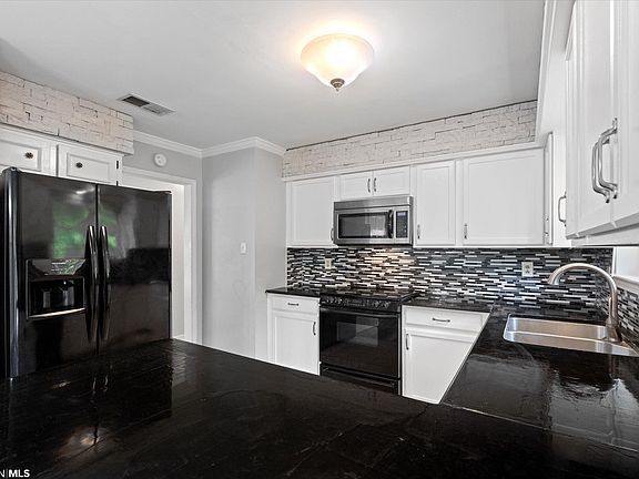 ***OPEN SUNDAY, JUNE 25, 2:00-4:00 PM***Enjoy over 2300 of flexible living space in this nicely updated near-West Mobile home. Located just a few blocks from Providence Hospital, unlimited retail, dining & educational options are nearby. Beautiful new laminate floors flow through the main floor, anchored by large living and dining spaces. The well-equipped kitchen includes a side-by-side refrigerator all appliances, and convenient pantry/closet. From the dining room, French doors invite you to experience the fabulous entertainer’s deck, which also provides outdoor access to the ground level. A Primary bedroom with its fully-equipped ensuite bath, and two additional bedrooms and hall-bath share the upper level. Downstairs, an enormous “L-shaped” bonus/family room with stained concrete floors provides an indestructible flex-space for multiple use combinations, and outdoor access to the generous covered patio, tucked underneath the deck. The opposite side of the ground level features a built-in mud room bench leading to an 180 square foot laundry room, and a 20 x 13.5 fourth bedroom, bunk room or office. A third full bath with walk-in shower serves the downstairs. This home occupies one on the larger lots near the back of the subdivision, and comes with a metal storage building for outdoor toys. Call your Realtor to make an appointment before it’s too late!