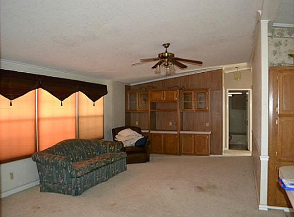 Manufactured home sits on approx 1.35 acres(2 Lots). Foundation is retrofitted. Mature Trees. Detached Oversize 2 car garage. 24X23 workshop. Split Bedrooms. Ceramic tile in kitchen, dining, utility & both bathrooms. Covered porches front & side. Copper wire taken from AC unit outside & Hot Water Heater missing.