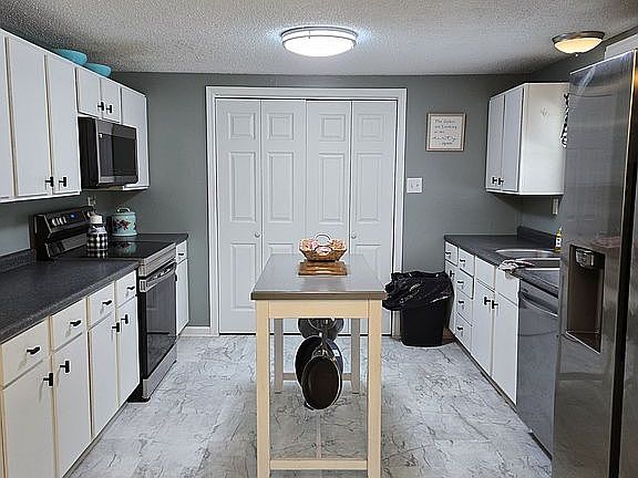 We've loved the coziness of this home for the past 6 years. However, it's time for us to move on. It's a 3 bedroom, 2 bath, single story house with a 2 car detached garage/workshop. New roof, shutters and gutters installed 2024. New appliances and water heater were put in last fall (2024). New flooring in kitchen, hall bath, laundry, hall and 2 bedrooms. New decking and new 33 foot round pool were replaced and completed in 2020. Perfect for a starter home or a small family. Home is being sold "as is".