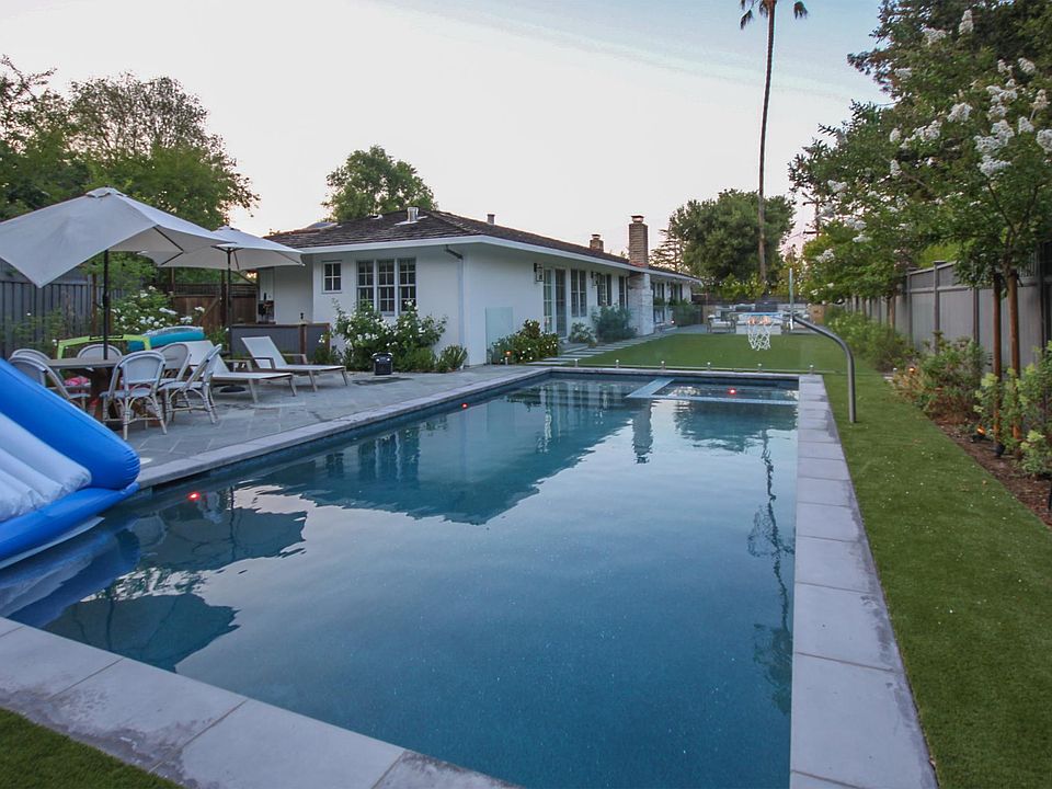 Newly remodeled, 4 bed 3 bath furnished home with new, resort-style backyard. New pool and hot tub, outdoor kitchen, fire pit, skate ramp, trampoline, artificial turf, etc. New master suite with heated floors, his & her vanities, free-standing tub, bidet, Comcast TV, walk-in closet. Air conditioning, hardwood floors, washer and dryer, kitchen appliances. Back gate opens to church park with use of green field, volleyball court, basketball courts, and two playgrounds. Superb, safe location at end of cul-de-sac, less than one mile walk to Downtown Los Altos. Available Sept 1st as four month rental. Two to four month lease only, from Sept 1st - Dec 31st. Landlord pays water, garbage, landscaping, pool service, Comcast cable TV and internet. Tenant responsible for PG&E. No smoking or pets.
