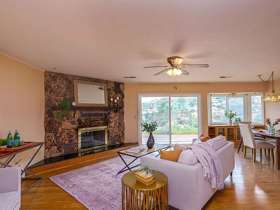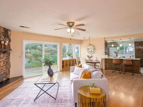 Single story home with fabulous views! *End of the street location offers complete privacy. *Owned solar! *The home boasts wood flooring, updated windows, and ceiling fans throughout. *The spacious kitchen with a center island opens to a large living room with an ornate floor to ceiling stone fireplace. *Roomy master bedroom with a large walk in closet and an ensuite bathroom with a soaking tub. *Beautiful panoramic views from the large deck in the backyard. *The home is surrounded by mature trees and lush foliage and located in a great community.