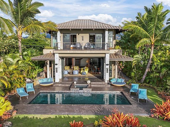 Sunlight and ocean breezes flow through 21 feet of bi-folding floor-to-ceiling glass doors, complemented by soaring 14-foot ceilings that blur the boundaries between home and horizon. Step into this South Maui beachfront estate, where elegant stone columns welcome you to a true masterpiece. The open-concept spaces unfold effortlessly, anchored by a chef's kitchen featuring custom white oak cabinetry with an interior finish that adds warmth and depth, quartzite countertops, tumbled Belgian limestone tile accents, hand-scraped French oak flooring, professional-grade appliances, and a generous breakfast bar— the perfect hub for shared meals, laughter, and connection. A floating staircase leads upstairs to the bedrooms, where the primary suite awaits as a serene sanctuary for the soul. It includes a spa-inspired soaking tub, dual vanities, a spacious walk-in closet, and a private ocean-view lanai ideal for morning reflections. Each additional guest suite has been thoughtfully designed to soothe the senses, with layouts and features that prioritize comfort, including ensuite bathrooms for ultimate privacy. Outside, your personal coastal retreat beckons. Lounge poolside in the saltwater pool, host gatherings under a canopy of stars, or savor a cocktail as the sky blazes with sunset hues. A detached guesthouse with a full bathroom and a two-car garage offer flexible additional space, while integrated smart home technology blends modern convenience into this tranquil, soul-nourishing haven. The adjacent lot is also for sale by the same seller. (MLS #407415, 892 S Kihei Rd) and can be purchased together.