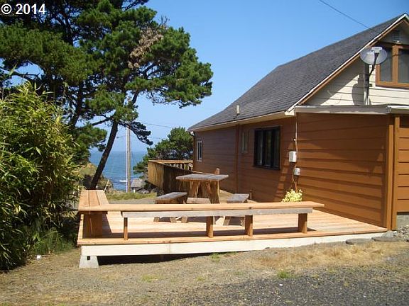 Perfect Coastal Retreat located on an over-sized ocean view lot, across the street from the oceanfront. Charming home features 2 bedrooms, 1 bath, den at upstairs attic area, man cave, wood floors, efficient kitchen w/newer vinyl floors & all new underfloor plumbing. Newer decks & paint, well maintained super clean and move in ready !!! Furnishings available for purchase outside of escrow.