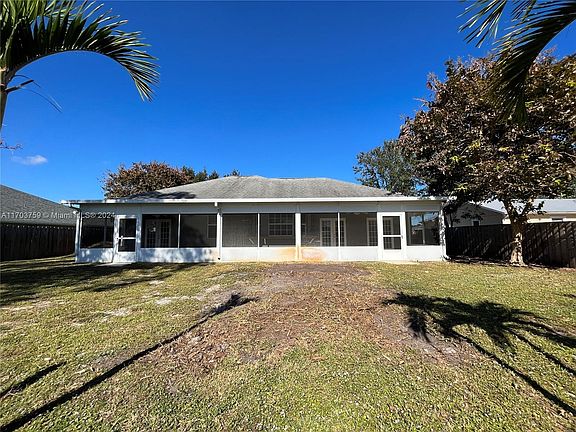 Great value with possible seller financing. Large covered screened in patio, fenced back yard with canal behind lot for extra privacy and CBS construction. Features include a primary bedroom bathroom with a separate tub and shower, a foyer entrance hallway, formal dining area and nice kitchen with large breakfast area. Close to shopping, schools and the Florida Turnpike and I-95.