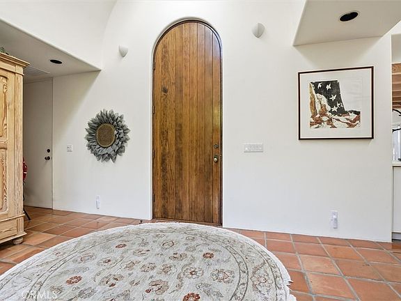 Experience timeless Montecito-inspired elegance in this beautifully crafted custom home. From the moment you arrive, the home’s architectural character stands out. A private courtyard entrance, tall arched front door, and dramatic, playful entry sequence set the tone. Step inside and be greeted by a Zen-like atrium with a spectacular waterfall feature, creating an immediate sense of calm and sophistication. Throughout the home, high ceilings with exposed wood beams, smooth stucco walls, and polished Saltillo tile floors enhance the warm, authentic style.