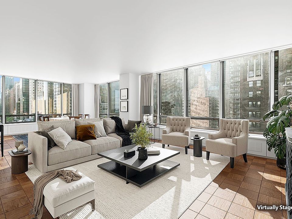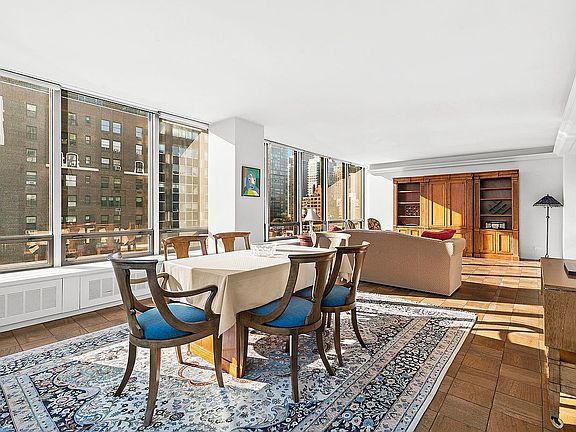 Perched high above the city in one of Manhattan’s most prestigious cooperatives, this sun-flooded corner home offers a commanding vantage point through oversized windows with sweeping Southern and Eastern exposures. The graciously scaled layout opens with a dramatic foyer that flows into an expansive living room — an entertainer’s dream — where sky, city, and water merge into an unforgettable backdrop.