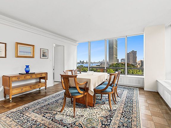 Welcome to the highly coveted “F” line at 860 United Nations Plaza, a striking 3-bedroom, 3-bathroom residence boasting approximately 2,100 square feet of grand interior space and mesmerizing views of the Manhattan skyline, East River, and the architecturally significant United Nations complex.